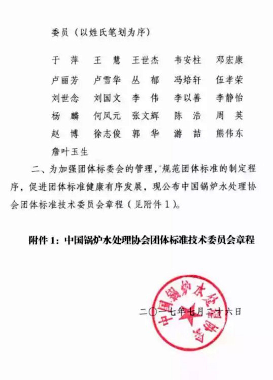 關于成立第一屆中國鍋爐水處理協會團體標準技術委員會的通知!